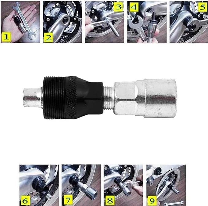 【クランクプーラー】スクエアテーパークランクセットに適します。調整可能なスパナ、58mmまたは16mmスパナと合わせてご利用ください。あなたはトラブルを速やかに解決するのに役立ちます 調整可能なスパナまたは58mmまたは16mmのスパナが必要なだけです: クランクアームのボルトを外す 工具の黒い部分を締めつけるまでクランクにねじ込みます クランクが動き始めるまで、ねじを締めて工具の銀部分を引き締めます。ユニバーサルバイククランクプーラー。