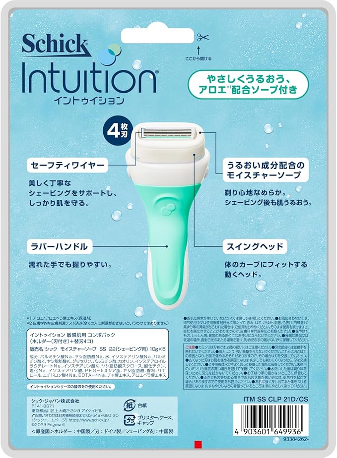 Schick(シック) シック Schick イントゥイション 敏感肌用 クラブパック 女性用 カミソリ (替刃5コ 内1コは本体に装着済み) 単品 グリーン 1個 (x 1)