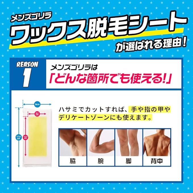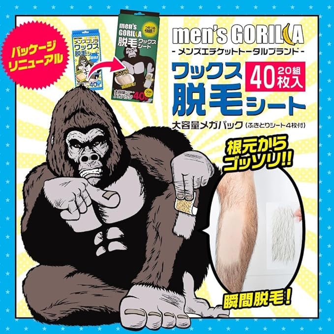 ⭐【メンズゴリラ ワックス脱毛シート】ムダ毛の処理はしたいけど、サロンに行くのはちょっと怖かったりするあなたにオススメのメンズゴリラ・ワックス脱毛シートです。腕や足に濃いムダ毛が大量に生えてるけど、サロンに行かずにまずは気軽に脱毛シートで処理してみませんか?温めて・張って・はがすだけの3ステップで簡単にムダ毛が処理できちゃいます!