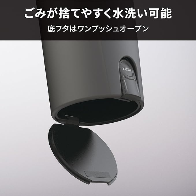 底フタはワンプッシュオープンで、片手でゴミに触れることなく捨てれます。