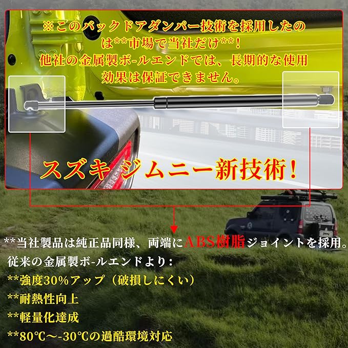 【2025年 技術革新】バックドアダンパー 自由停止 途中止まり 90度まで開閉可能 炭素繊維 【スズキ ジムニーJB64/JB74W/ジムニーノマド専用】 リアハッチダンパー ジムニーシエラ フリーストップ機能 途中止まりでき ジムニーアクセサリー 自由的にドア固定 ドアパンチ対策 油圧ダンパー 車検対応 純正交換