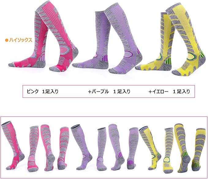 [ハザコ] スノーボード スキー ソックス 防寒 靴下 アウトドアウェア ブーツカット/ハイソックス/オーバーニー3タイプ ジュニア/レディース/メンズ適用 厚手 1/2/3足入り