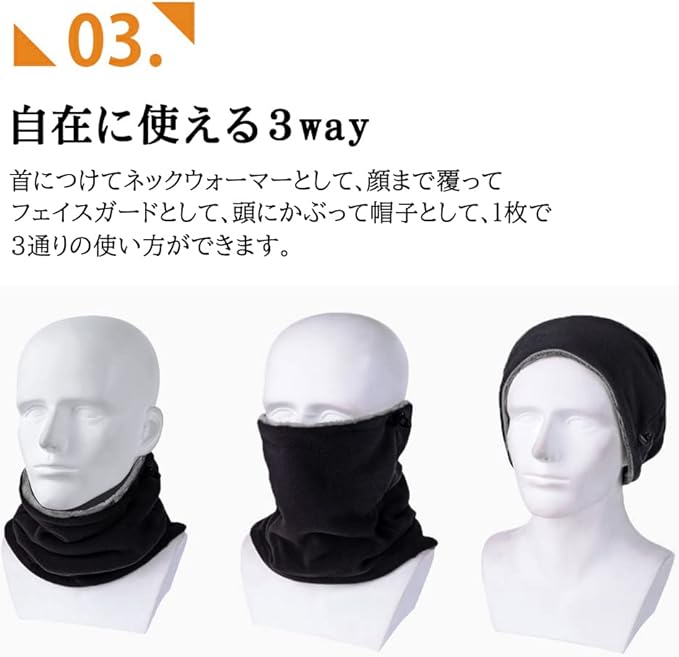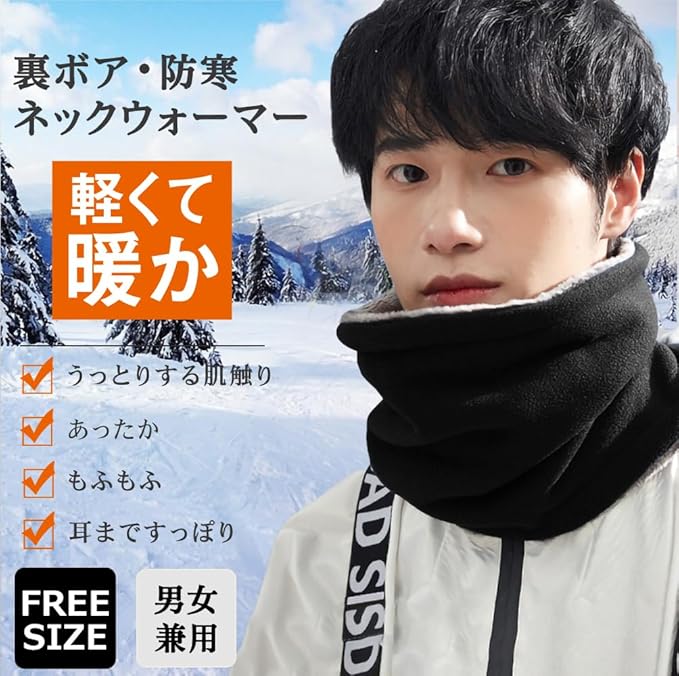 【防寒対策バッチリ】ネックウォーマーは、これからの冬に欠かせない!防風性能と保温効果で、寒さからしっかり守ります。暖かい設計で、外出も怖くない!