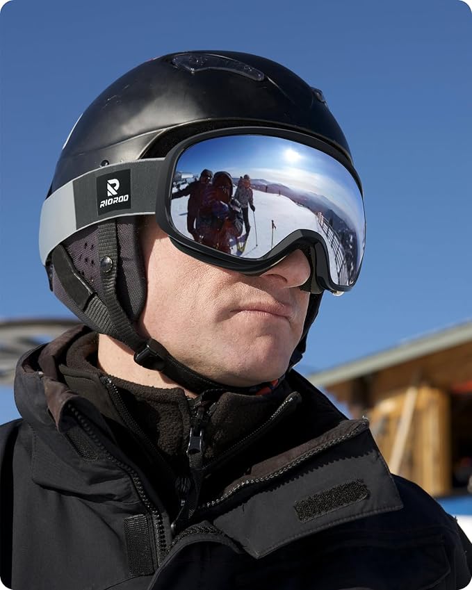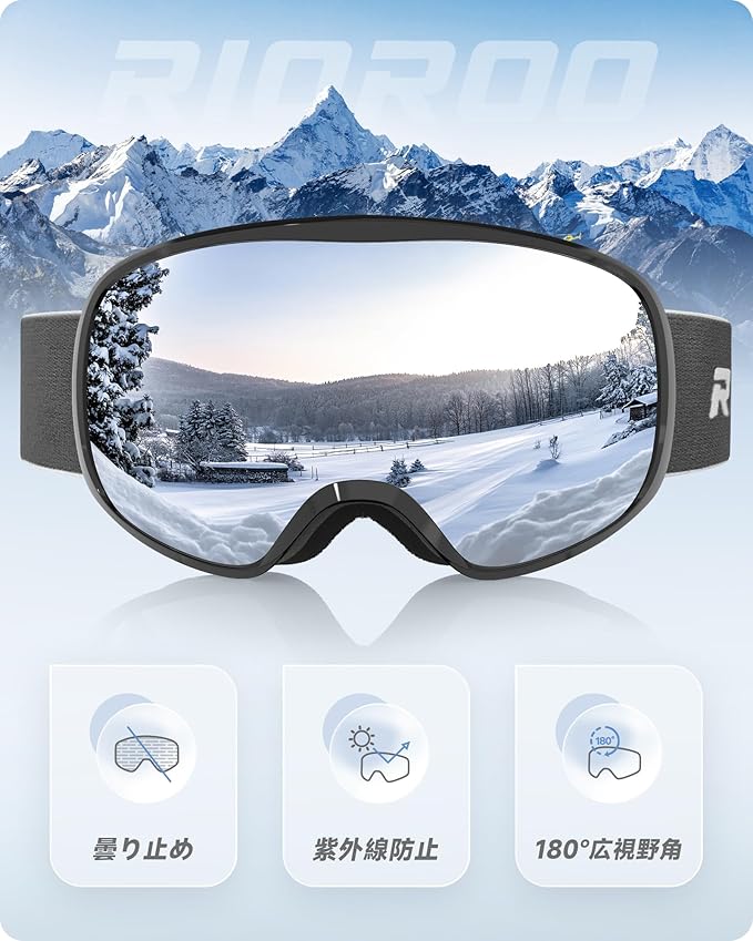 [RIOROO] スキーゴーグル スノーボードゴーグル OTGメガネ対応 広視野 球面レンズ 100% UVカット 曇り止め 防風/防雪 柔軟 耐衝撃 メンズ レディース 大人 ユース