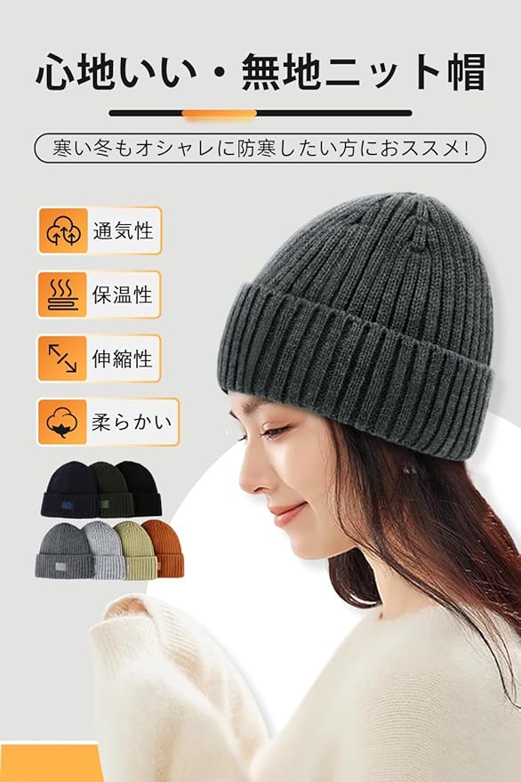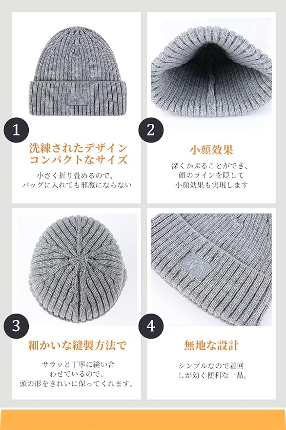 【美しいシルエット】定番なニット帽として洗練されたシルエットとシンプルなデザインで毎年人気のニットキャップと間違いありません。深めにかぶっても、浅くかぶってもオシャレに、頭からすっぽりかぶるだけで、手軽に小顔効果を出します♪