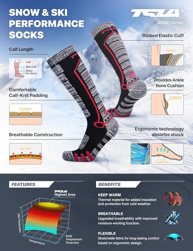[テスラ] スノーボード スキー 靴下 2足組 [抗菌防臭・吸汗速乾・保温] 秋 冬用 スキーソックス コンプレッション アウトドア スポーツ 厚手 ソックス 男女兼用