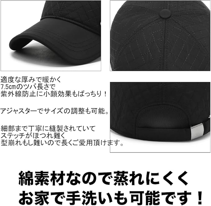 適度な厚みで暖かく、7.5㎝のツバ長さで紫外線防止に小顔効果もばっちり。綿素材なので蒸れにくく、お家で手洗いも可能です。細部まで丁寧に縫製されておりますのでステッチがほつれ難く、型崩れもし難いので長くご愛用頂けます。