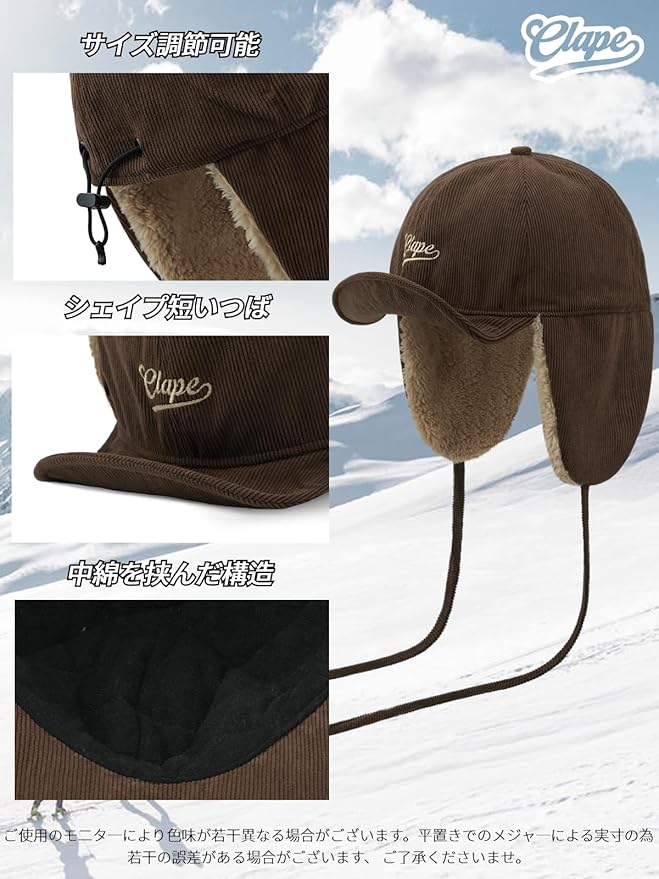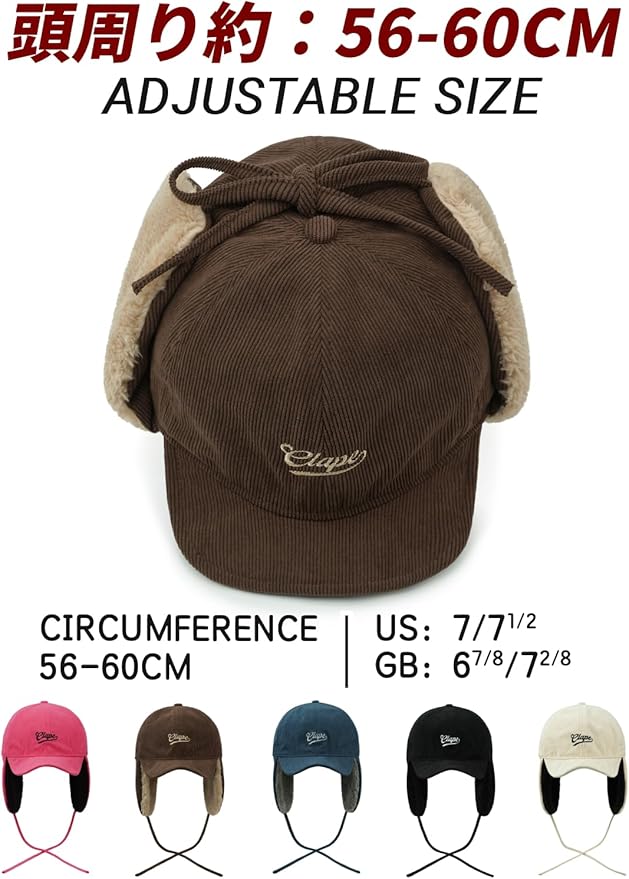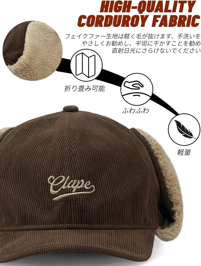 [Clape] 耳当て付き帽子 コーデュロイ キャップ おしゃれ 防寒 保温 寒さ対策 アウトドア 秋 冬 スキー スノボ 防寒キャップ 通勤 通学 自転車 冬用帽子 暖かい 旅行 登山