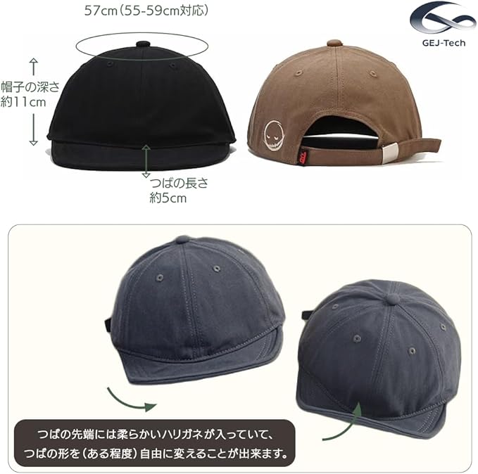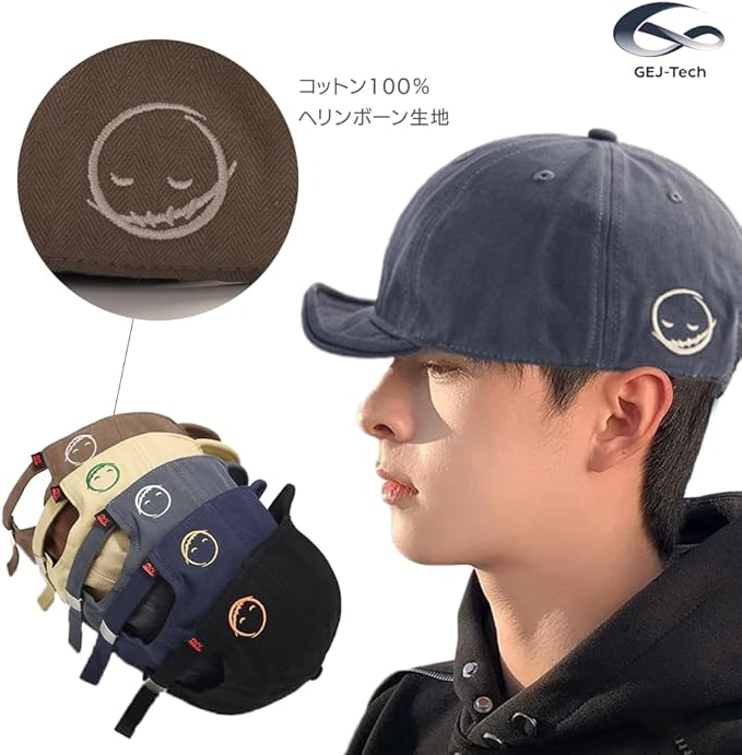 [GEJ-Tech] 短つば キャップ コットン メンズ レディース 帽子 春 夏 秋 冬 ショートブリム