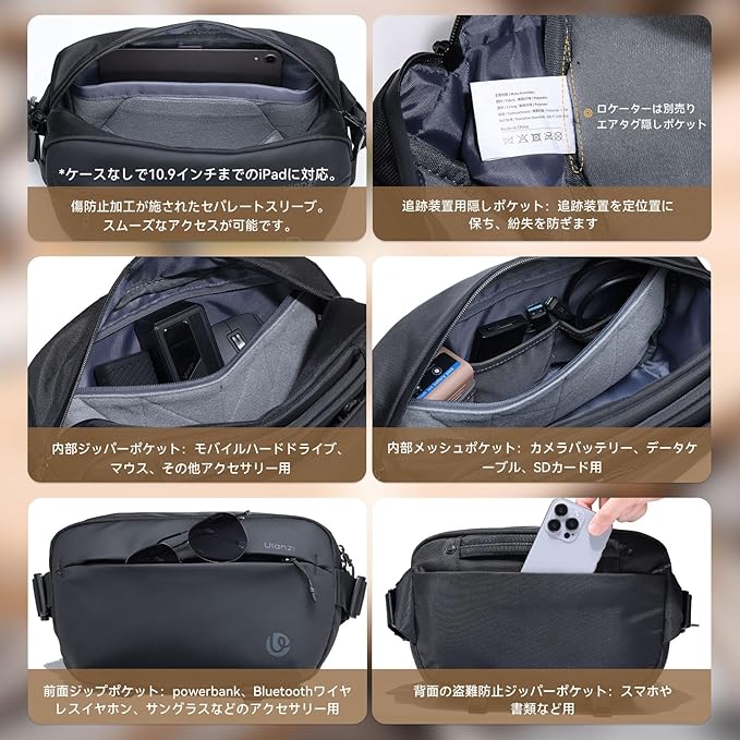 Ulanzi カメラバッグ ショルダーバッグ 撥水加工 ガジェットポーチ 斜め掛け デジタル収納袋 仕切り調整 PC周辺小物用 モバイル収納ケース スマホ/iPadmini/充電ケーブル/バッテリー/USB充電器/SDカード用 カメラアクセサリー 軽量 コンパクト 旅行 通勤 出張 小物入れ カメラマン・vlogger向け PB038