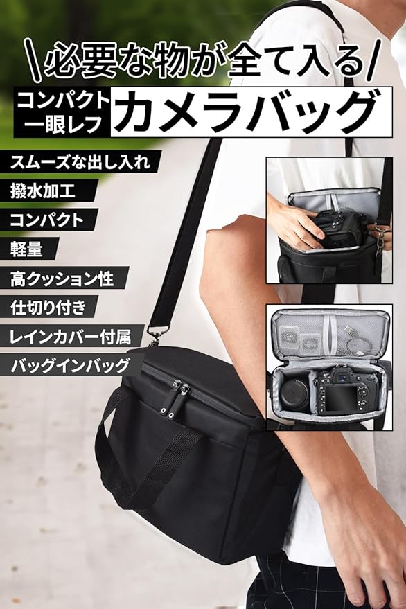 一眼レフ ケース カメラバッグ [一眼レフと複数のレンズをコンパクトにまとめられるカメラバッグx防水仕様xクッション間仕切りと肩ひも付き] [osafu]