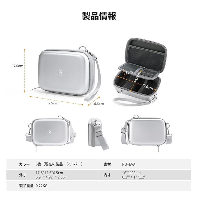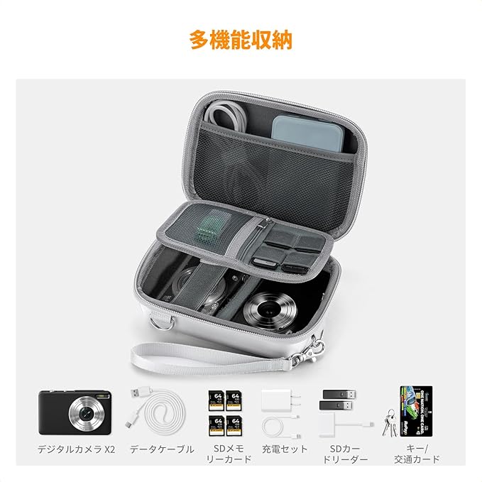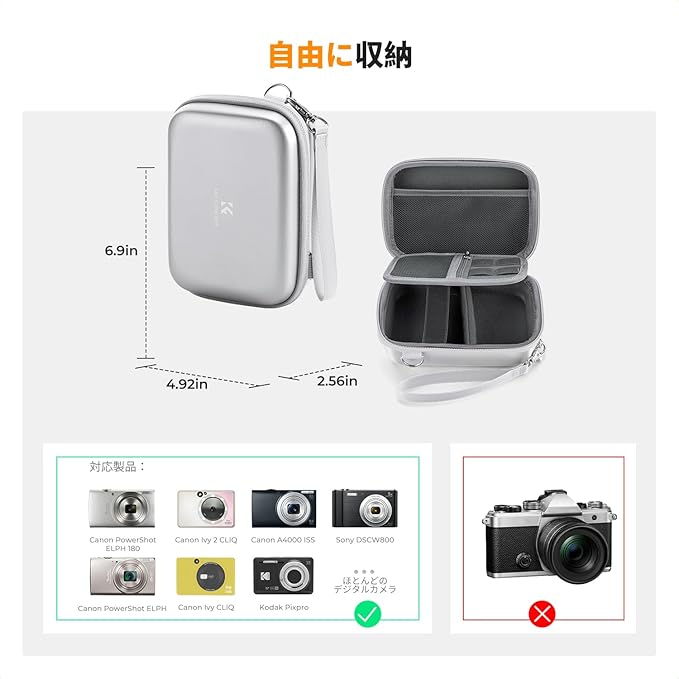【商品の仕様】カメラ用ハードケース 外サイズ:17.5*12.5*6.5cm、内サイズ:16*11*3cm、重さ:約250g、対応機種:Canon Ivy Mini、Canon Ivy 2 Mini、Canon Ivy CLIQ、Canon Ivy 2 CLIQ、Kodak Pixpro、Canon PowerShot ELPH 180/190、Sony DSCW800 / DSCW830、Canon PowerShot ELPH、Canon A4000 ISS、Gopro HERO8、GoPro Hero 7 Silver、GoPro MAXなどデジタルカメラやアクセサリー。「ご注意: デジタルカメラ 及び他のアクセサリーが含まれません」