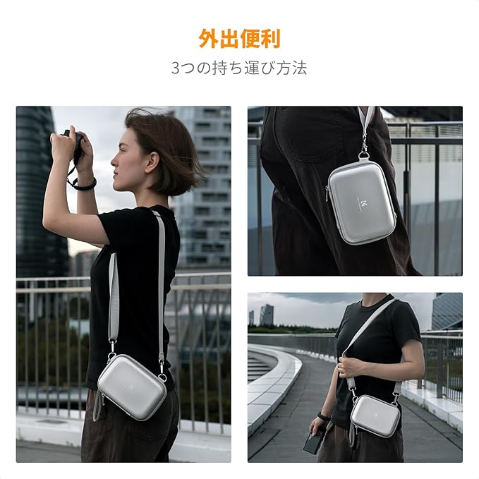 【調節可能なカメラショルダーケース】調節可能なショルダーベルトで、あらゆる身長の方に適しています。リストストラップも付いてますので、ハンドバッグとしても使えます。コンパクトてオシャレな外観で、子供や学生にも適しています。普段使いにもギフトにも最適です。