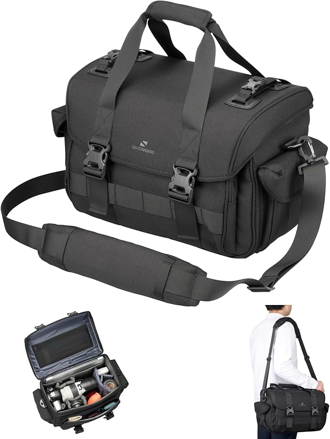 ハクバ 【限定商品】カメラバッグ GW-STANDARD リッジ ショルダーバッグ15 AZ ブラック AMZSGWSR-SB15 望遠レンズを付けたまま横向き収納 大容量 三脚取付可能 スペースに無駄のないスクウェアデザイン 4977187005141