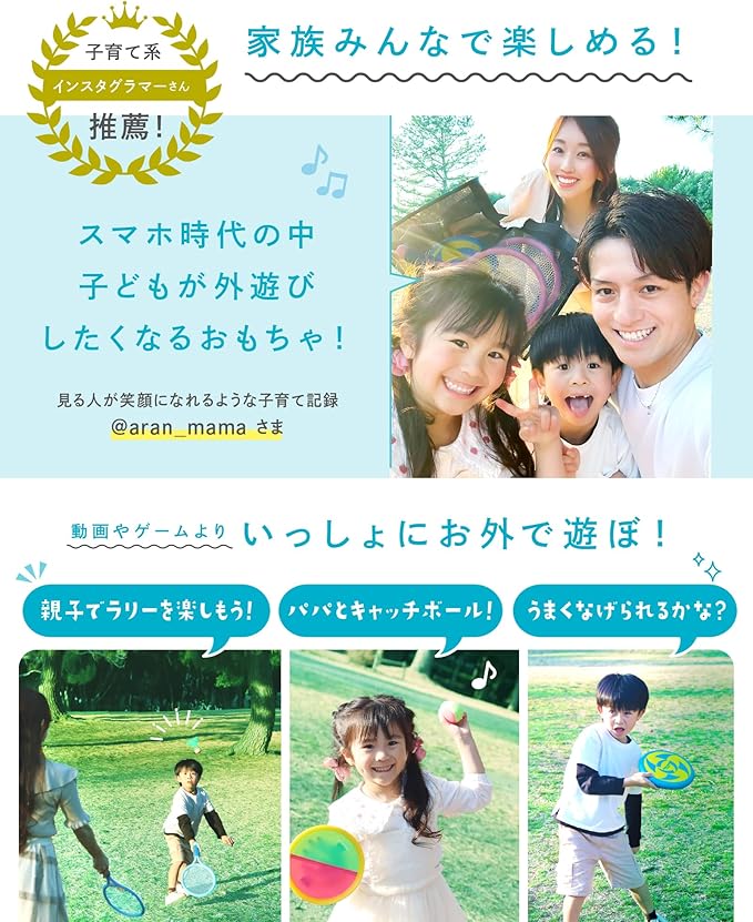 外遊び おもちゃ グッズ 子供 公園遊び バトミントン フリスビー キャッチボール 【おしゃれ収納バッグ付き】ラケット セット
