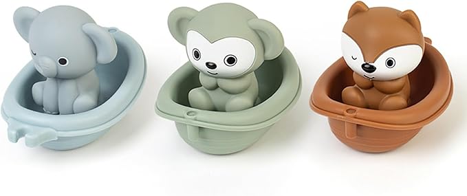 お風呂 おもちゃ 動物【3個】水遊び おもちゃ 1ヶ月から5歳 お風呂玩具 柔らかい素材 ベビーバス 船型水遊び玩具 かわいい お風呂遊び プール 知育玩具 男の子 女の子 子供 誕生日プレゼント 出産祝い(象+サル+狐)