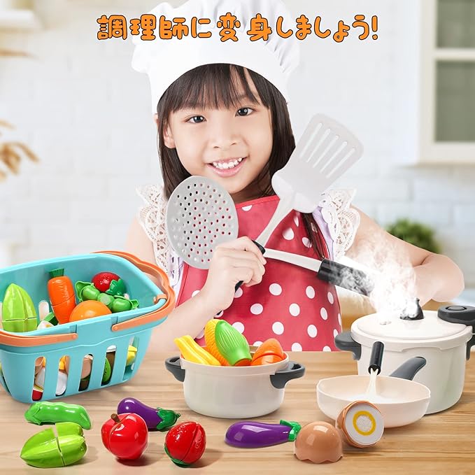 【贅沢セット&収納】贅沢な40点セット!キッチン用具や食材などをたくさん揃っています。子どもに遊びながら、キッチン用具&食材の認知を習えま【贅沢セット&収納】贅沢な40点セット!キッチン用具や食材などをたくさん揃っています。子どもに遊びながら、キッチン用具&食材の認知を習えます。大容量のかごもセットしていて、日常の収納に便利です。す。大容量のかごもセットしていて、日常の収納に便利です。