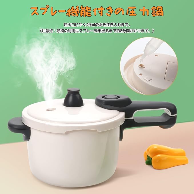 【リアル噴霧】子供が台所で料理を作るリアルな気分を味わえように、料理のやり取りを真似にするに、リアルな噴霧、IH調理器が付きます。楽しい雰囲気を作れるので、楽しく疑似体験が出来ます。