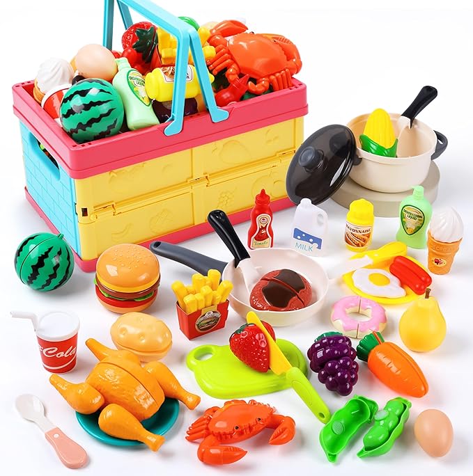 【豪華な48点おままごと セット】このおままごとセットは、豊富な種類のリアルなフードがあり、果物、野菜、そして様々な食べ物がいっぱいです。リアルなデザインで作られ、子供たちが料理をしているような感覚を楽しめます。