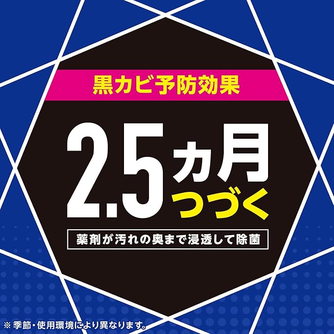 ●2回目以降:2.5ヵ月に1回の使用で防カビ効果が高まり、通常のお掃除だけでキレイが続きます。(浴室内の温度や湿度などの使用環境により効果は異なります。)
