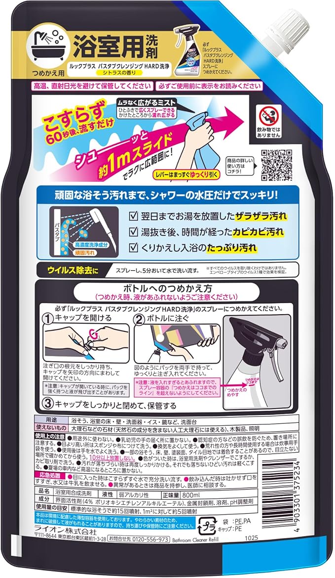 ●必ず「ルックプラス バスタブクレンジング HARD洗浄」スプレーにつめかえてください。