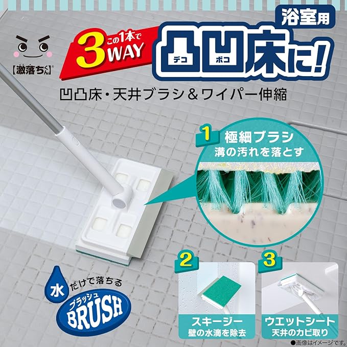 レック 激落ちくん 浴室用 凹凸床 ・ 天井 ブラシ & 水切りワイパー (伸縮タイプ)