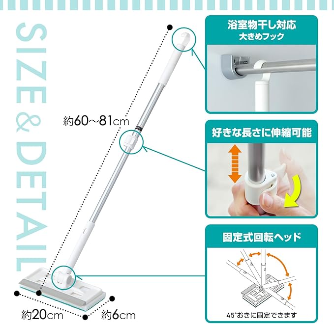 伸縮タイプ(60~81cm)なので立ったままラクラクお掃除。コンパクトに収納できます。