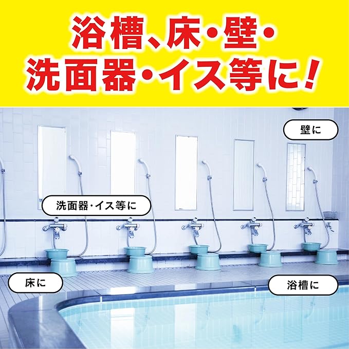 浴槽はもちろん、床、壁、洗面器、イスなどの湯あか、石けんカスもスッキリ落とします。