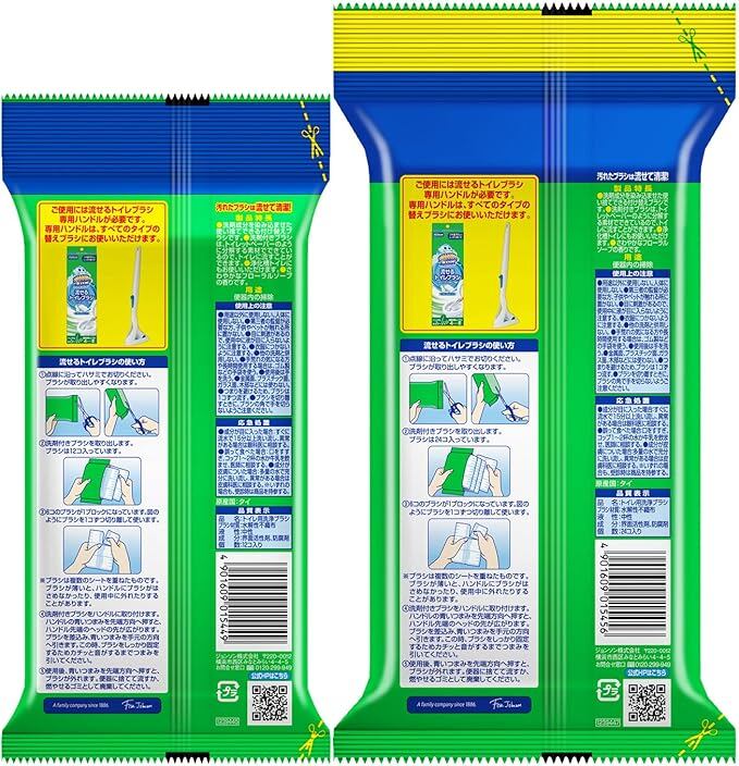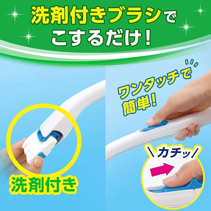 ●1回ごとの使い切りで、お掃除が終わったらそのままトイレに流せるから、いつでも清潔!ブラシはワンタッチでカンタン着脱。