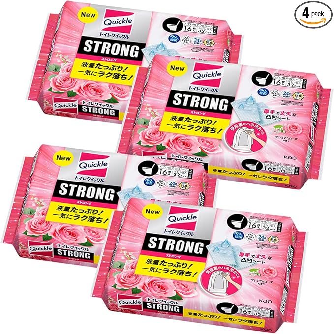 クイックル 【まとめ買い】トイレストロング トイレシート 液量たっぷり! 便座裏のハネ汚れも一気にラク落ち! プレミアムローズの香り 替え16枚 4個