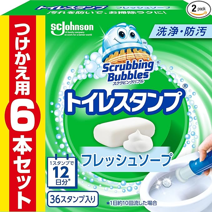 【Amazon.co.jp 限定】 スクラビングバブル トイレ掃除 トイレスタンプ 防汚 フレッシュソープの香り 詰め替え用 6本(36スタンプ分) 付け替え用 洗浄剤 まとめ買い