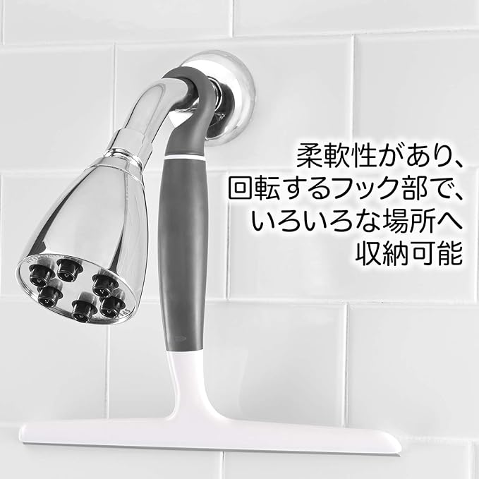 ●柔らかく回転するフックはシャワーヘッドやラック、タオルハンガーなどに掛けることができ便利