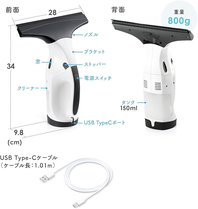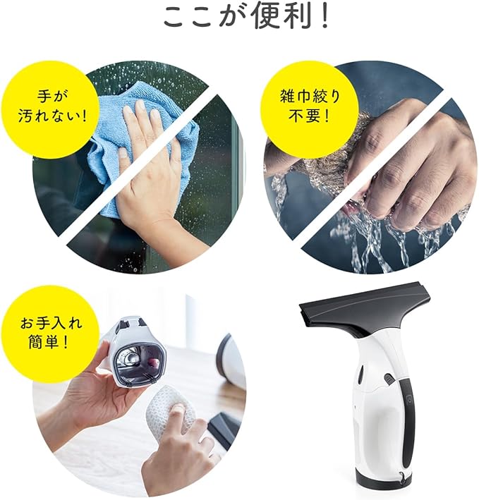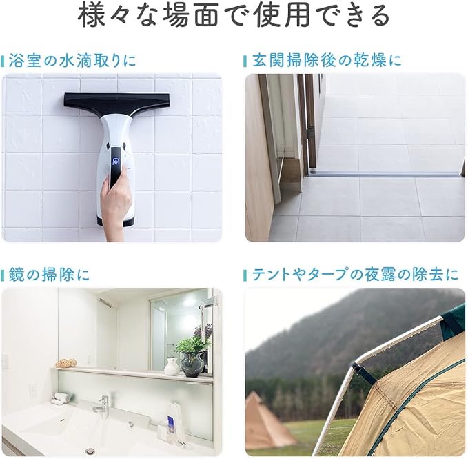 水滴を手軽に除去できる、電動窓ガラスバキュームクリーナーです。窓やガラスなどを手軽で簡単におそうじできます。