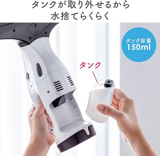 重量800gなので片手でも使えます。水がたまるタンクは取り外せるので、水捨ても手を汚さずできます。