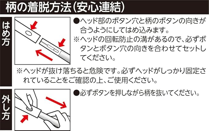 【ハンディタイプや浴室用にもラクラクチェンジ !】全長約81cmと窓ガラスの上部にも届く長さ。柄を外してハンディタイプとしても使えます。 その他、「アルミ伸縮柄・つなぎ柄セットLL554」または「安 心連結」構造がついた柄が取り付け可能です。また、モップ部分を「浴室カビ取り楽絞りワイパースペアSP391」と交換すれば浴室のお掃除用品としても使用できます。