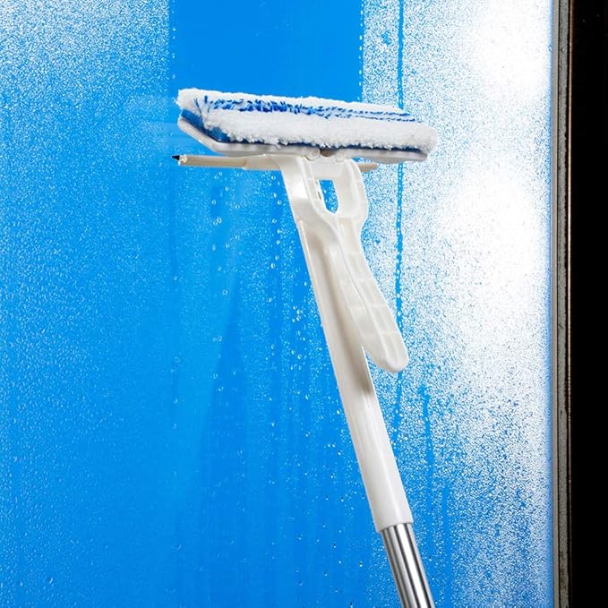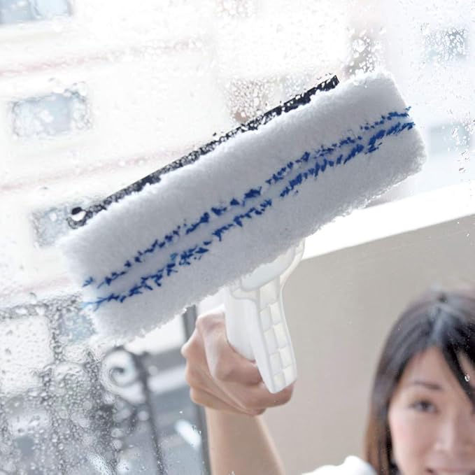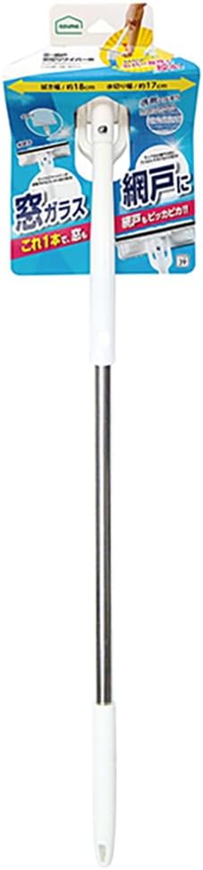 マイクロファイバーとブラシ繊維のWのチカラで窓も網戸もこれ1本でお掃除できます。洗剤不要、水だけでOK。全長約81cmのミドル柄タイプ。 ガラスをキレイに仕上げる水切りゴム付きです。 「安心連結」構造がついた柄が取りつけ可能です。
