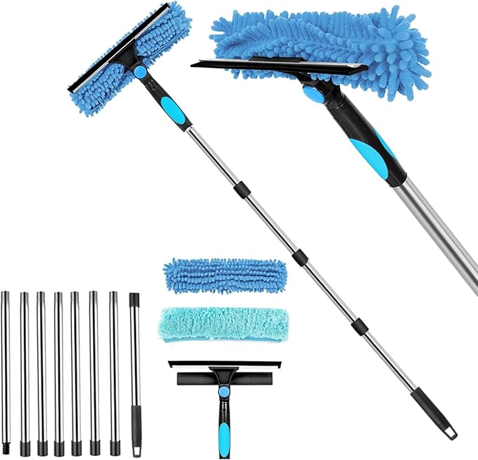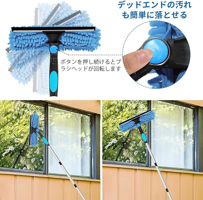 3in1 窓ガラス 掃除 10個 エクステンション 高所掃除ブラシ 窓掃除道具 長さ約4m 高所 窓掃除 水切りワイパー 窓掃除 ワイパー マイクロファイバー付き 伸縮可能 高所掃除 外壁 ガラス