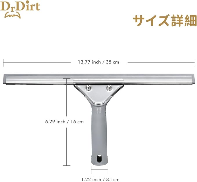 Dr. Dirt スクイジー 窓拭き ワイパー 水切り 35cm 天然ゴム ソフト 水跡残らない ガラス 壁 掃除用