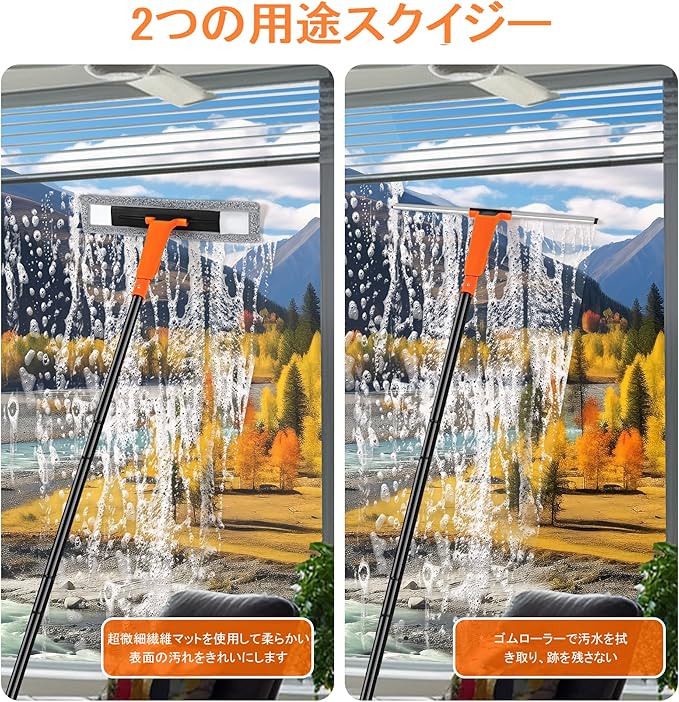 フロア&ウィンドースクイージーコンボ:このプロ仕様の家庭用窓拭き ワイパーは、リサイクルハンドル付きで、タイルやコンクリート床、大理石などのフロアスクイージーとして使用できるだけでなく、ウィンドースクイージーとして高所や車の窓、ガラス、ドアなどの掃除にも使用できます。
