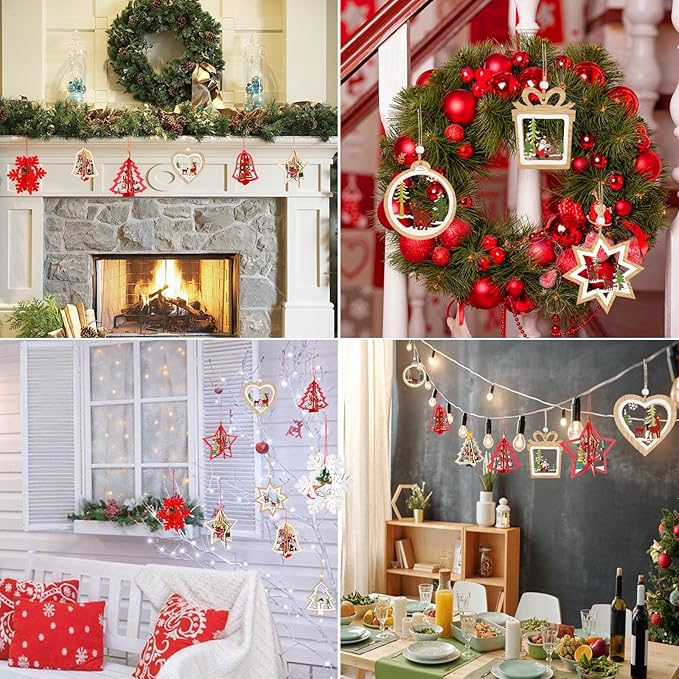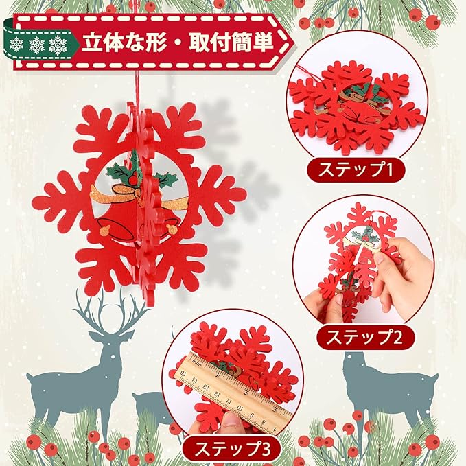 【デザイン】これらのクリスマスツリー オーナメントは全て透かし彫りの技法を採用して、芸術品のように見えます。一方で、セットの中に8個の木製オーナメントは立体の形にデザインされるため、クリスマスツリーや天井などに吊り下げて、どんな角度から見ても問題ありません。