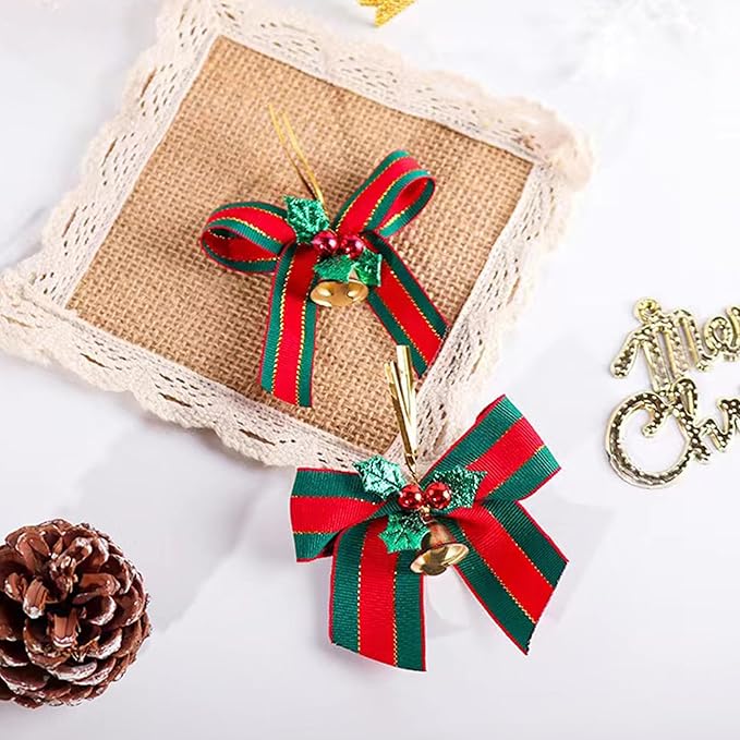 クリスマスリボン 20個セット かわいい 蝶結び ベル付き 蝶結び 鈴付き 飾り 鈴 クリスマスパーティー DIY用 プレゼント包装 リボン装飾 DIY手作り オーナメント ラッピング ギフト飾り (50, 1.5)