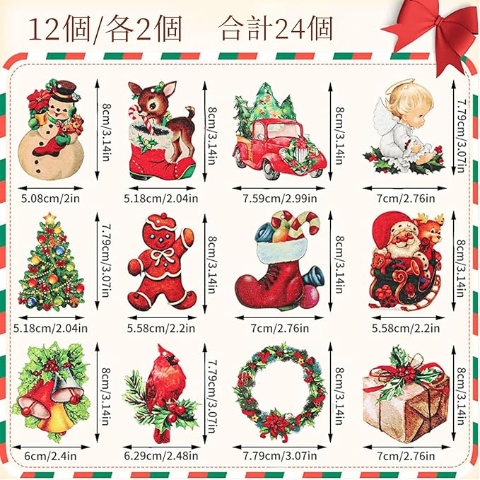 【お値打ちパッケージ】24点のクリスマスペンダントがもらえます。各アクセサリーには独特のデザインがあり、細部が美しい。デザインは多様で、数量は十分で、きっとあなたのすべての装飾需要を満たすことができます。