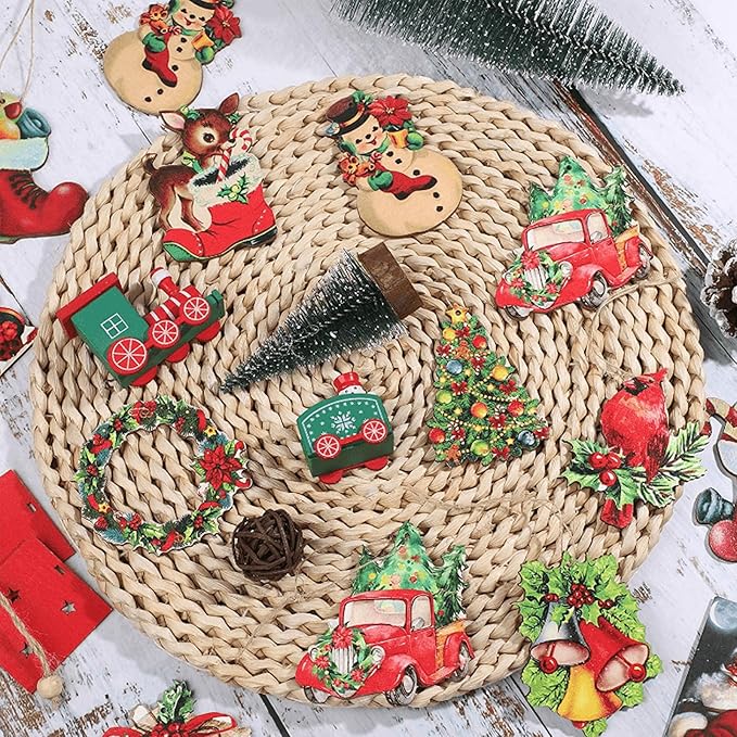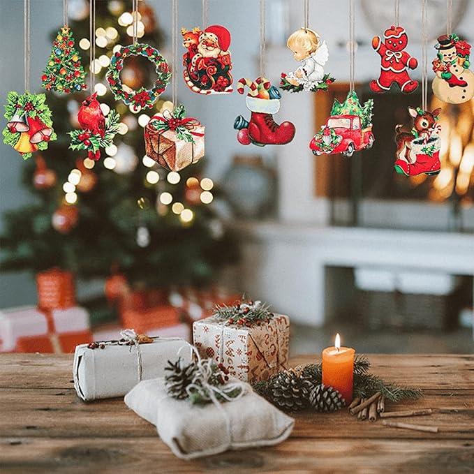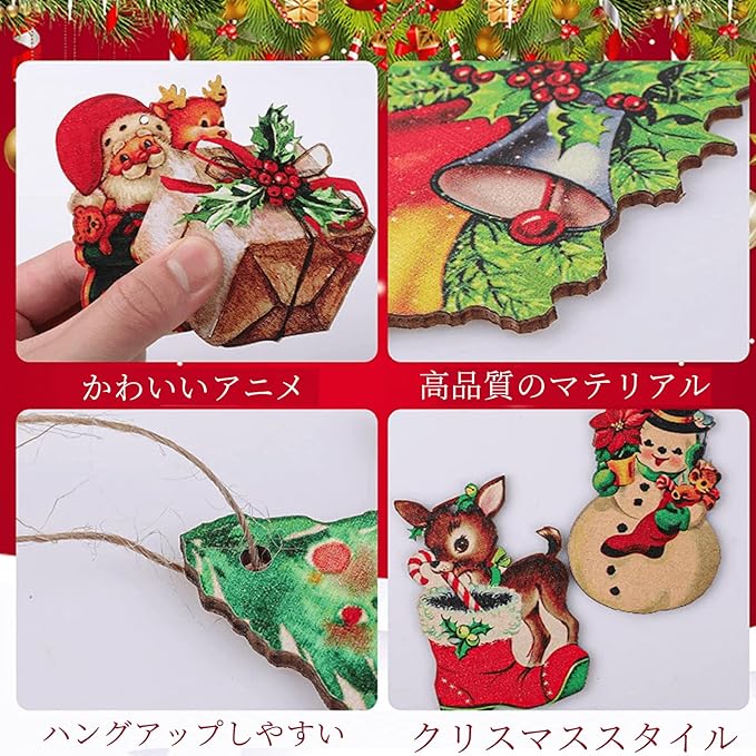 【上質な材料】私たちのクリスマスオーナメントは木製で作られ、精緻な図案と鮮やかな色が印刷されており、色あせることなく繰り返し使用でき、クリスマスに少しの閃光を加えることができます。それらを使ってあなたの家にクリスマスの雰囲気を加えます。これらの趣向を凝らした作品でクリスマス装飾を簡単に向上させ、祝日のスタイルを明らかにします。