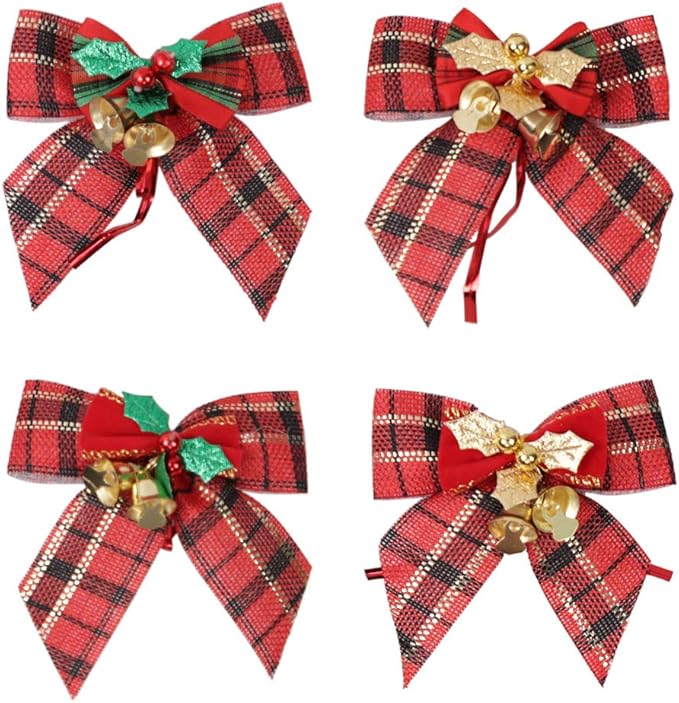 クリスマスリボン ベル付き ミニリボン 12個セット かわいい 蝶結び ベル付き クリスマス飾り DIY用 クリスマスツリー装飾 プレゼント包装 リボン装飾 DIY手作り オーナメント リーズ飾り付け DIY 手芸 (2個セット)