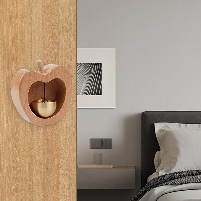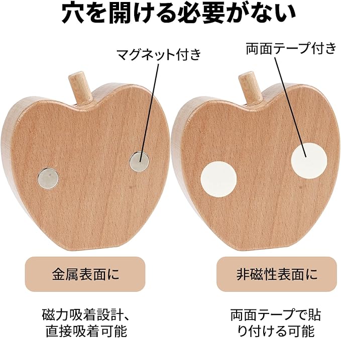 ドアベル 玄関 ドア 鈴 木製 非電動式 玄関チャイム ドアチャイム 取付簡単 マグネット式 両面テープ付き 玄関 ホーム用 店舗用 (りんご)