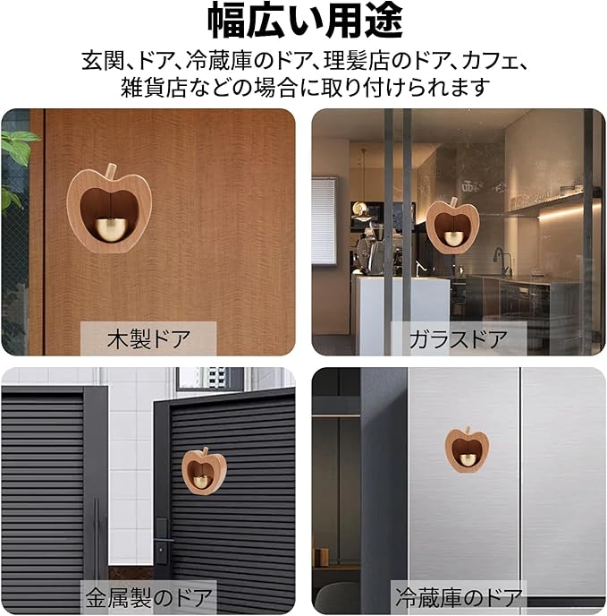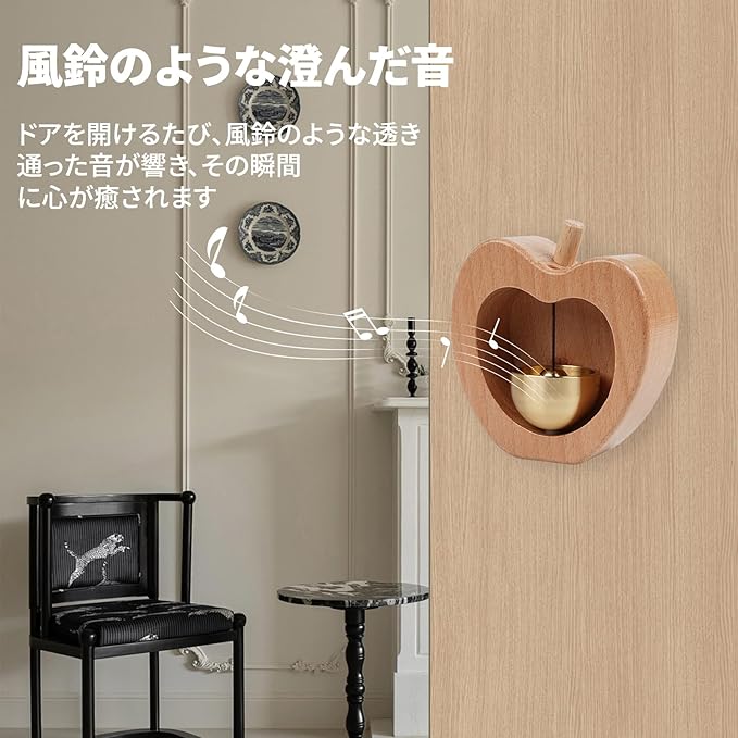 【風鈴のような澄んだ音】 扉を開けるたび、風鈴のような透き通った音が響き、その瞬間に心が癒されます。注: ドアの開閉方法や力の強さによっては、ドアベルがうまく反応しない場合があります。