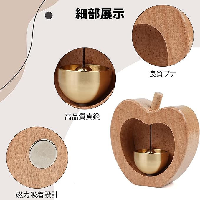 【高品質素材】 本体はブナで、ひび割れや変形がしにくく、丈夫で長持ちできます。鈴は真鍮製で、表面はオイルシールされ、繊細な光沢があります。 シンプルなデザインでどんなインテリアにもぴったりで、ご自宅を飾るのに最適です。