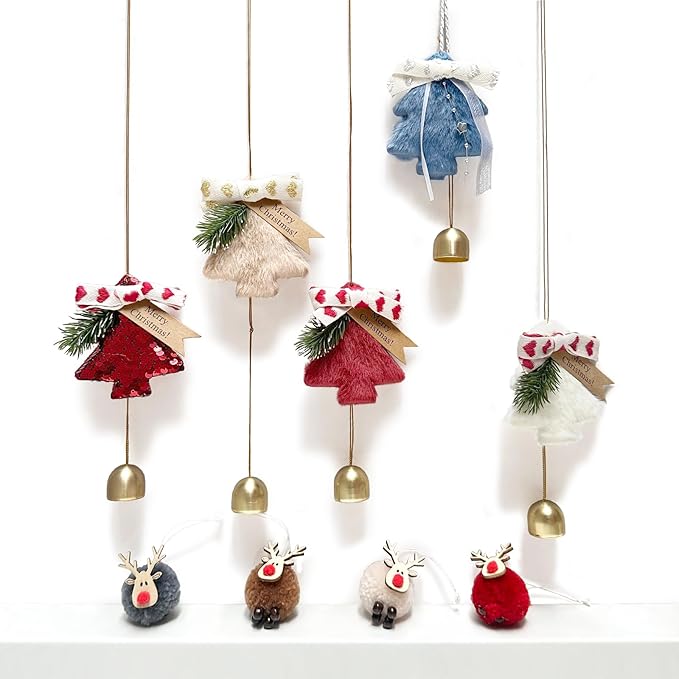 クリスマスベル チャーム クリスマスツリー オーナメント 9 個セット - クリスマスデコレーション 布製モコモコクリスマスツリーベル 鈴 クリスマスツリー 飾り,クリスマス 装飾ベル ぬいぐるみ 手作り感 北欧風 壁掛け、玄関飾り、窓飾り、プレゼント添え,新年の贈り物