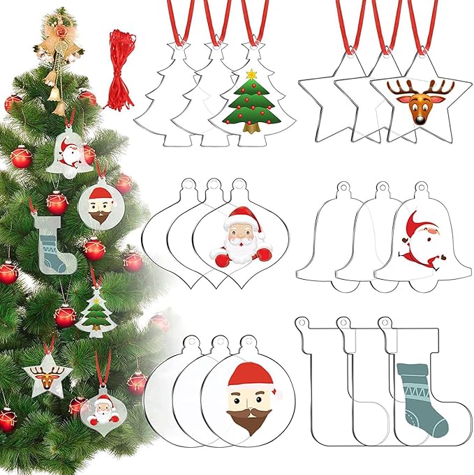 【DIYクリスマスオーナメント】 このDIYアクリルオーナメントは空白で透明なスタイルでデザインされています。想像力を最大限に活用して表面をDIYし、装飾として吊るし、フェスティバルの雰囲気を作り出します。