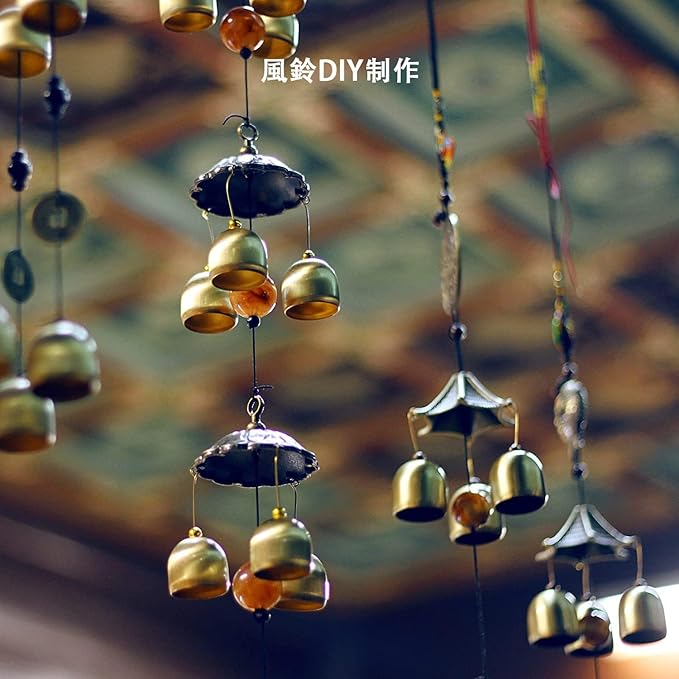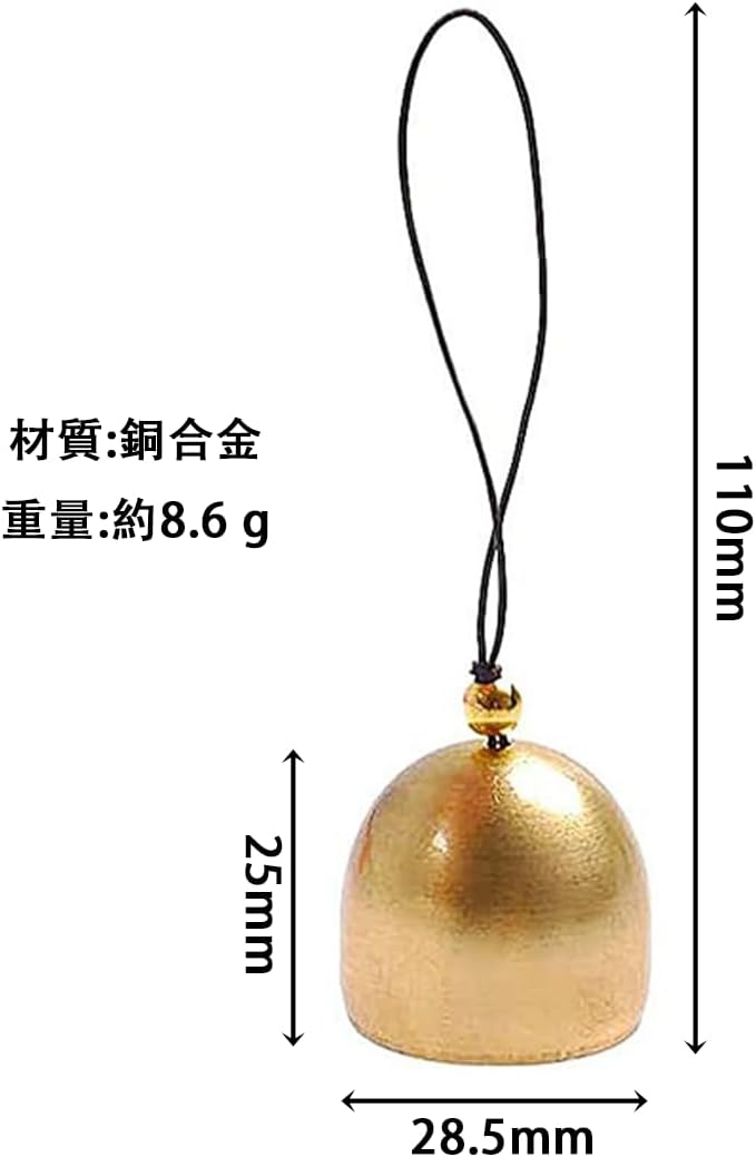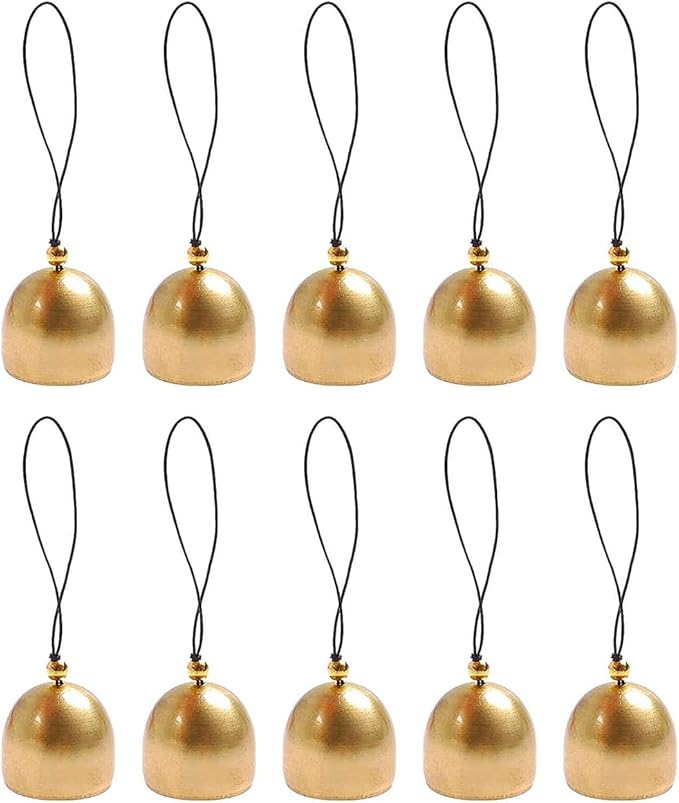 風鈴 鈴 ベル 真鍮 10個セット 吊り下げベル ロープ付き 金色 鐘 DIY 手作り 飾り物 風水 小鈴 仏教ベル 開運 厄除け 風水グッズ 運気 いい音 お守り キーホルダー